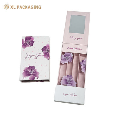 Caixa de cosméticos personalizada de luxo batom colorido Caixa de papel de gaveta de três pacotes Caixa de presentes cosméticos com espelho dentro