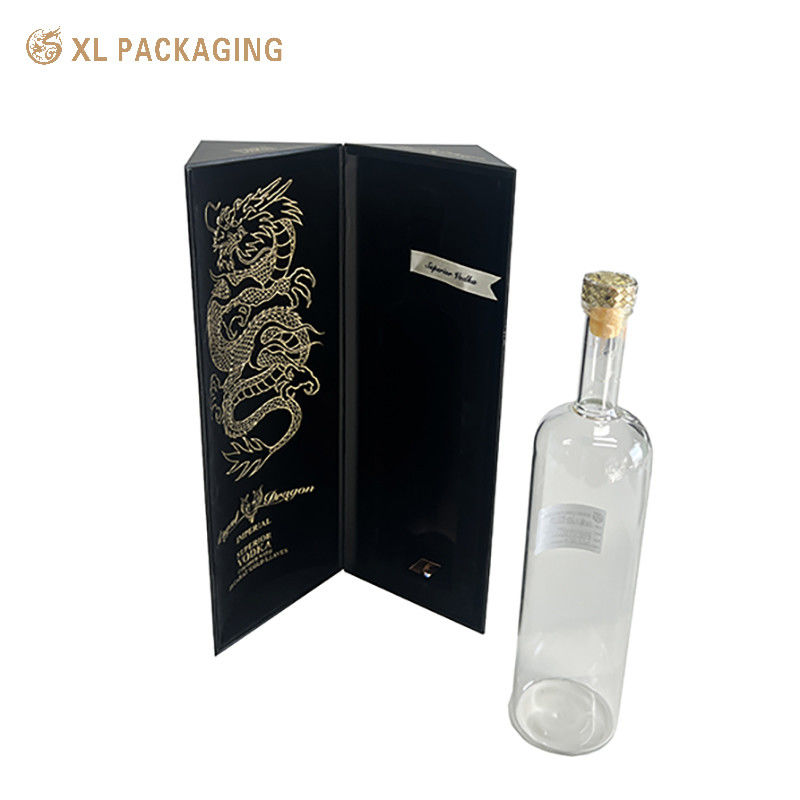 Caixa de Vinho Preta Magnética Personalizada com Folha de Ouro – Embalagem de Presente de Whisky e Vinho Tinto de Luxo com Bandeja de Veludo