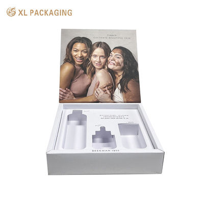 A caixa de embalagem cosmética de papel branco de impressão personalizada com fecho magnético e inserção EVA é uma escolha elegante e prática para apresentar cosméticos.