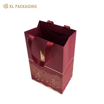 | Ponto | Bolso de papel de presente de venda por grosso Vermelho Um para embalagem de vinho Com alça de fita | |||||