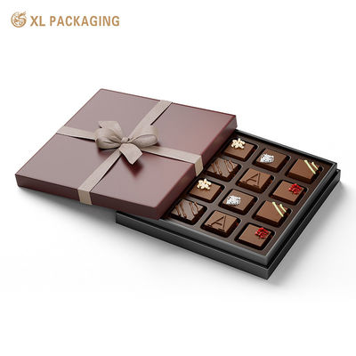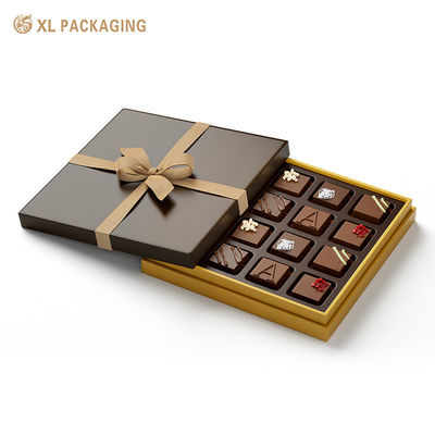 Caixa de chocolate escuro, uma tampa elegante e delicada com fita, a caixa de presente de chocolate de tampa é feita de papelão de 1,5 mm de espessura e papel preto texturizado.O padrão único da caixa de chocolate exala luxo e elegânciaA nossa fábrica oferece uma variedade de padrões de textura personalizáveis, cada um acrescentando um toque diferente à aparência geral da caixa.