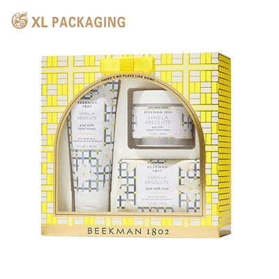 Proteção: A caixa protege os conjuntos de cuidados cosméticos durante o transporte e armazenamento, garantindo que os produtos cheguem em perfeitas condições.