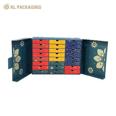 Fábrica de Caixas de Embalagem Personalizadas XL Packaging 24 peças Gaveta Caixas de Presentes Papel Cosméticos Natal Calendário do Advento Caixa de Embalagem Com Hot Stamping Interno Externo